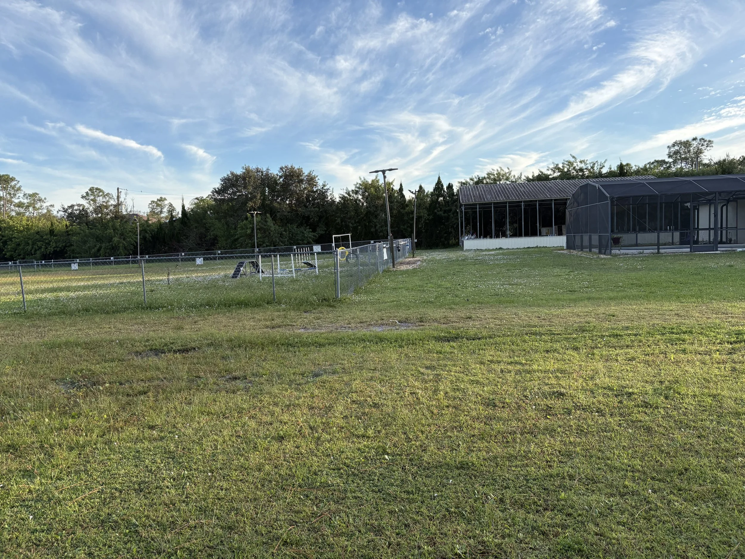 Our property includes open fields and sport facilities for agility, obedience, scent work, and protection training — whether for fun or competition.